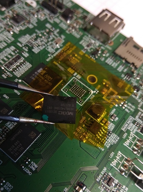 - I desoldered the NAND chip from the device using a hot air gun.