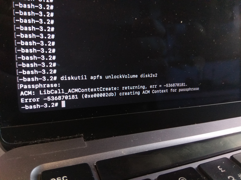 anymore! Entering the password would just say it's incorrect. diskutil also wouldn't allow unlocking it.