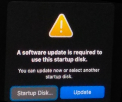 "software update required" pop-up, but that could be closed by pressing Startup Disk... and then quitting the